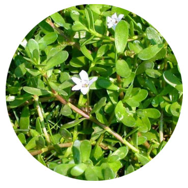 Brahmi Churna (Pulver) wird aus einer kleinen Pflanze aus der Familie der Wegerichgewächse gewonnen. Es wird die ganze Pflanze verwendet. Brahmi reduziert Vata und Kapha.Brahmi (Kleines Fettblatt)